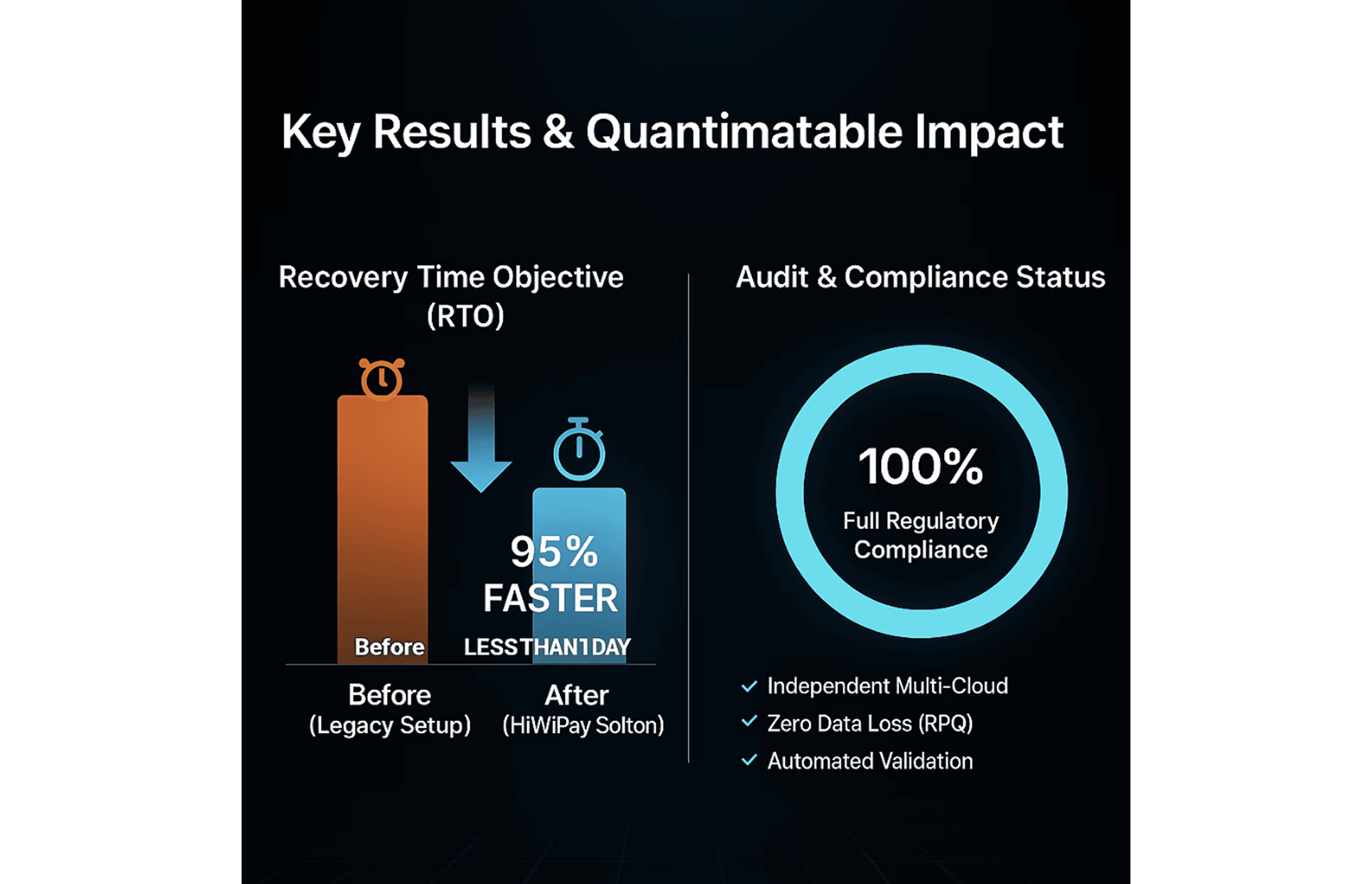 The implementation of the multi-cloud DR solution delivered measurable improvements across all areas, cementing HiWiPay's position as a more resilient and trusted fintech provider.